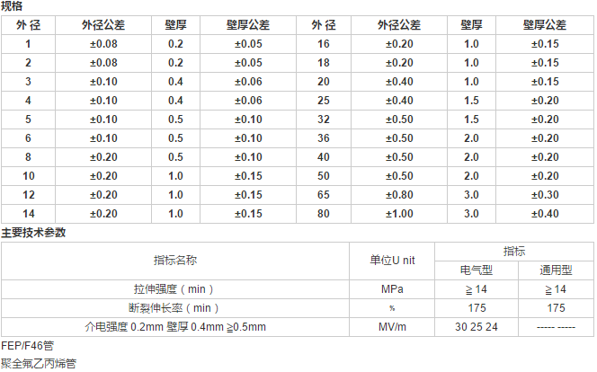 聚全氟乙丙烯(FEP)管俗稱F46,它是由聚全氟乙丙烯樹脂加入(或不加入)添加劑經(jīng)擠出成型而得,具有優(yōu)異的耐高低溫、耐化學腐蝕性、絕緣性和不粘性等。